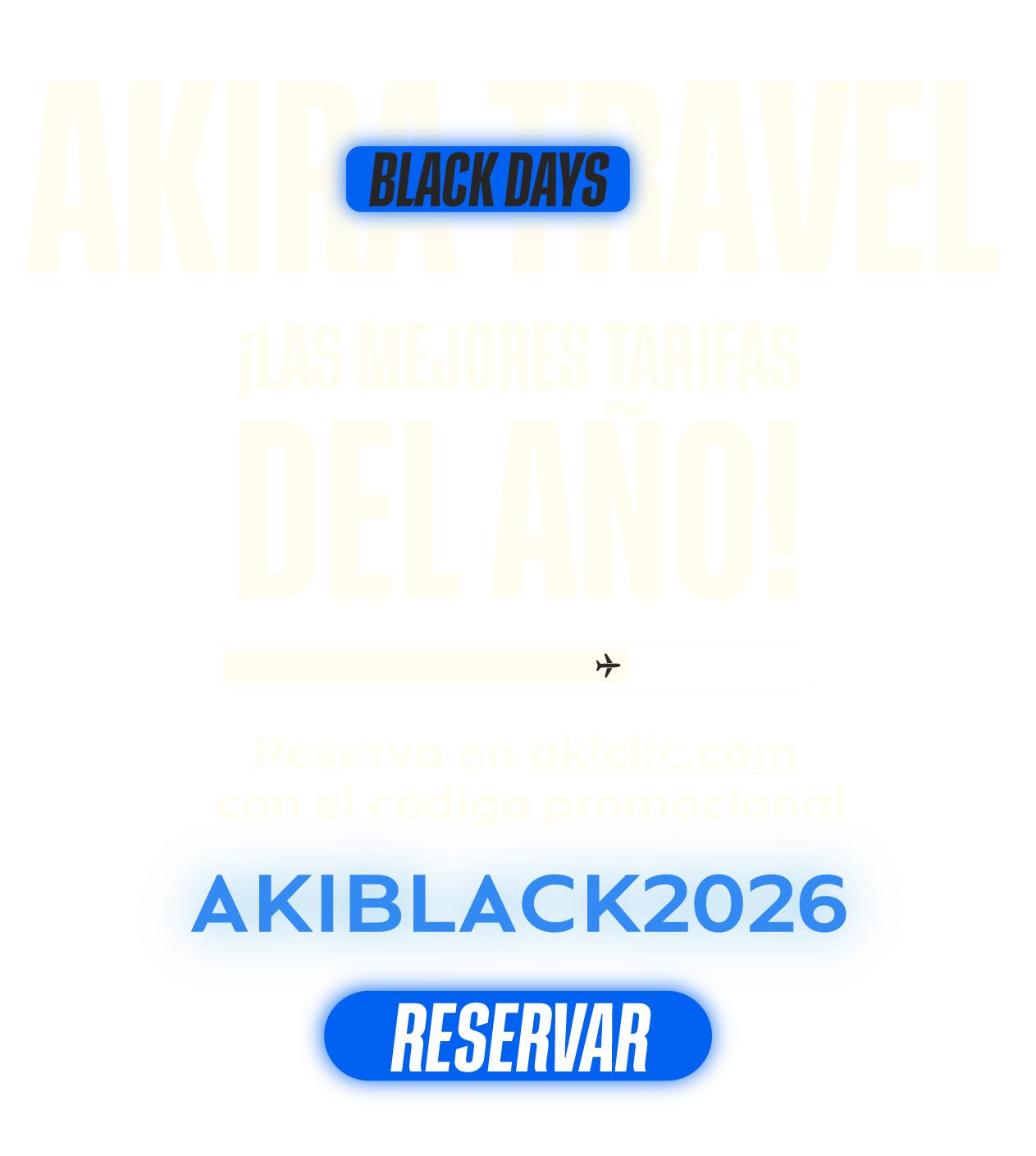 - Vigencia: Promoción válida únicamente del 20 al 30 de noviembre en programas y tarifas señaladas como Black Days Akira Travel.