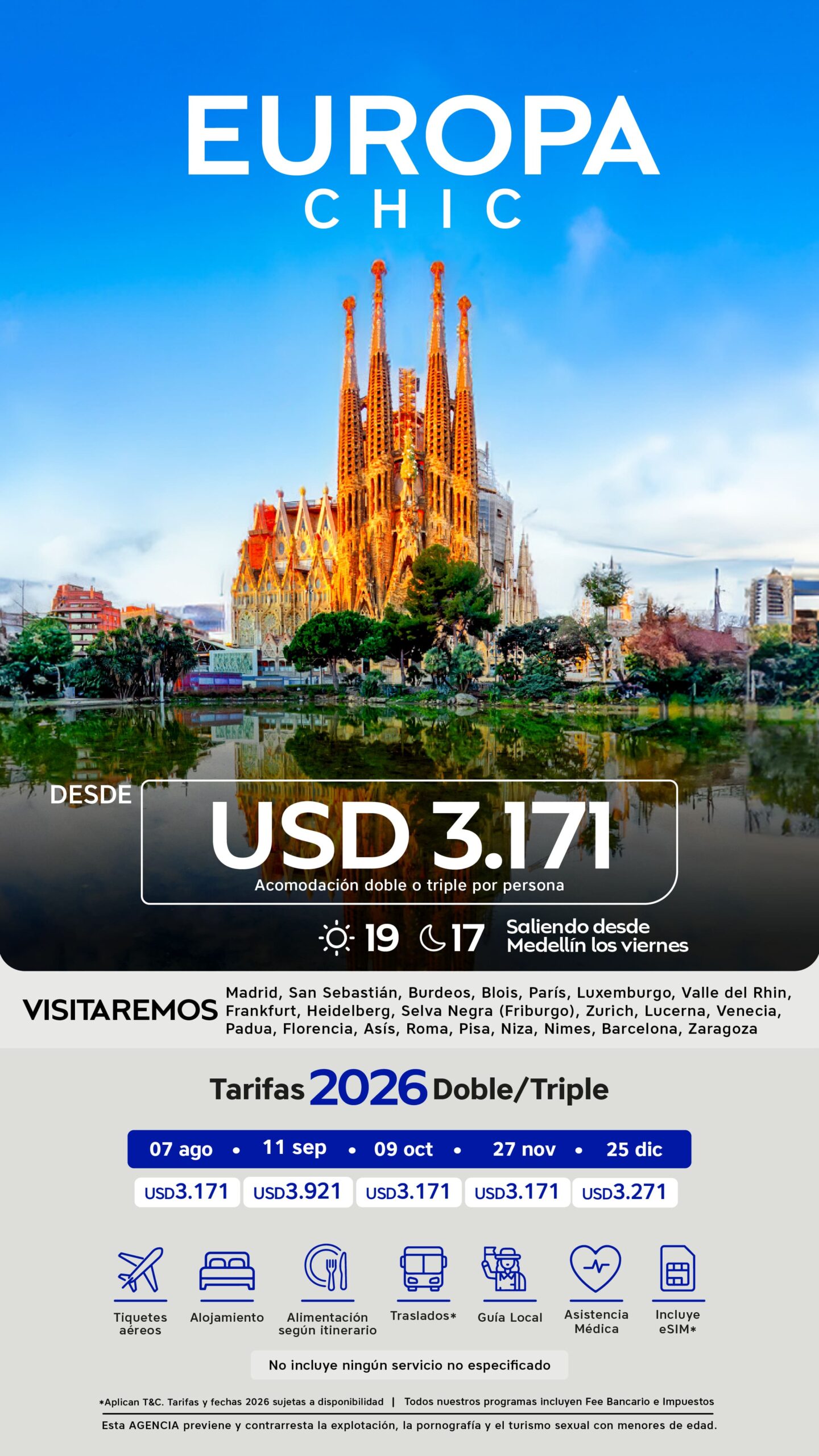 07 de agosto al 25 de agosto de 2026 | USD 3.171 | USD 4.371 | USD 2.771 |