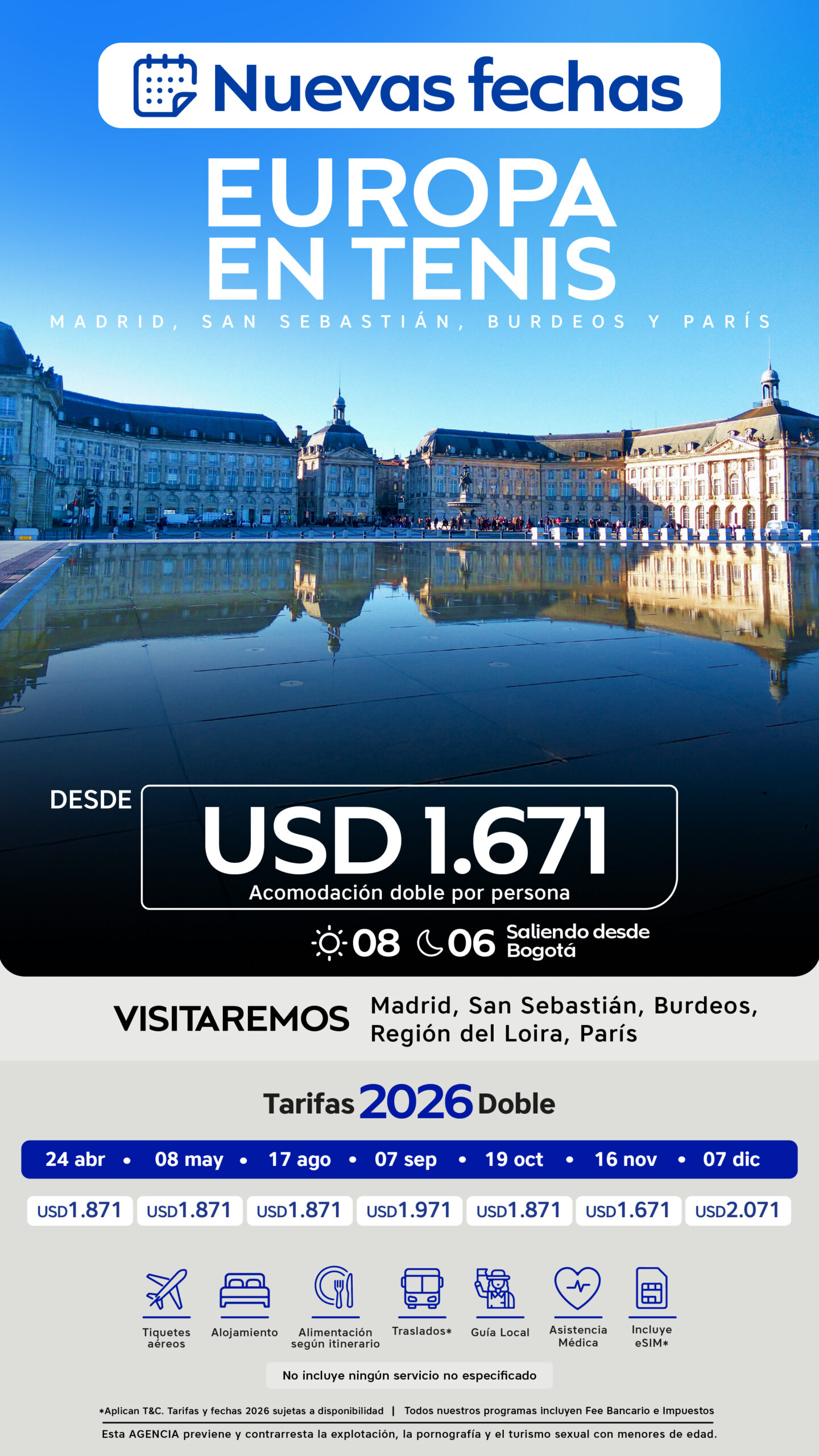 | 19 de octubre al 26 de octubre de 2026 (L) | USD 1.871 | USD 2.371 | USD 1.671 |