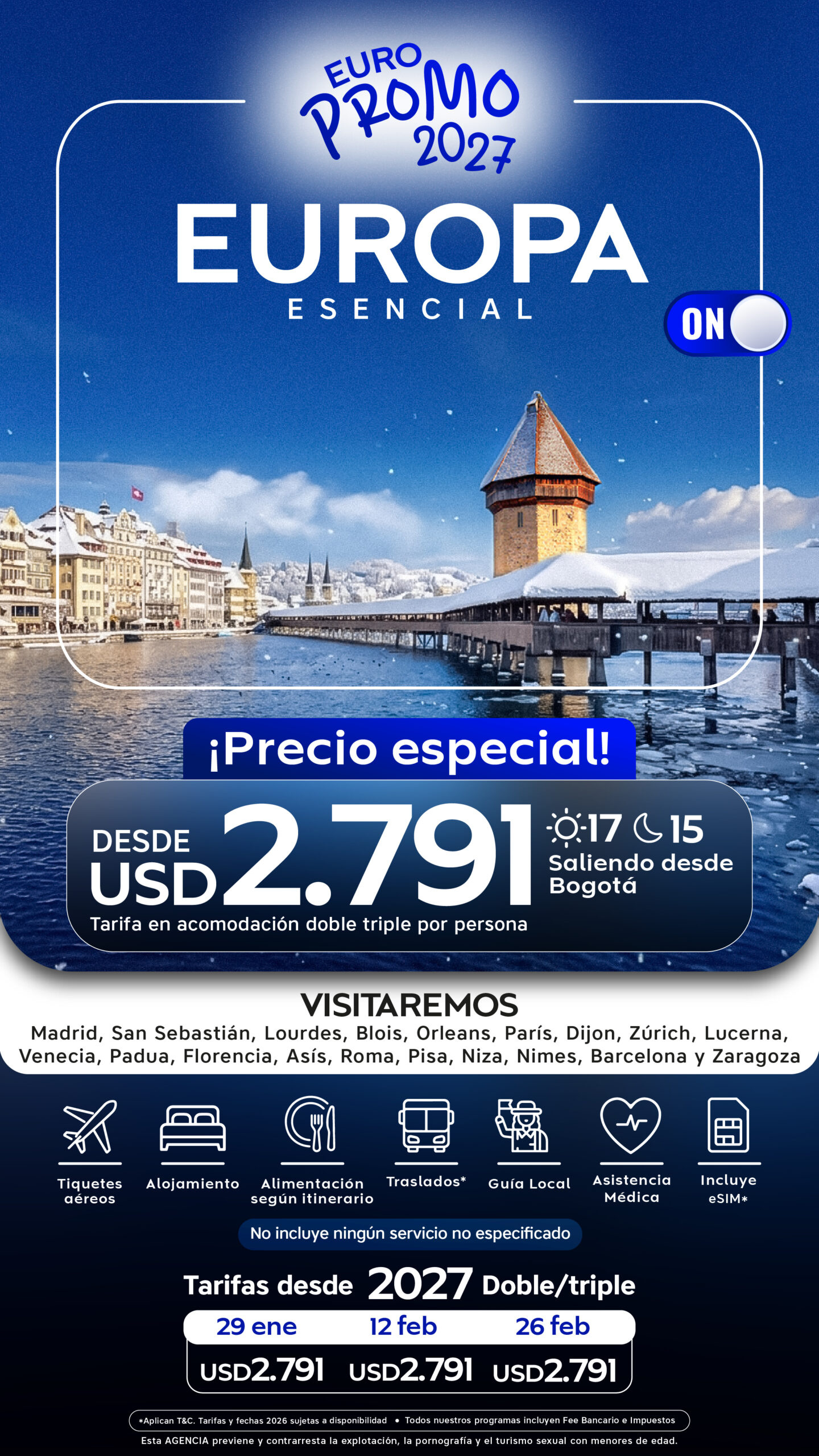 26 de febrero al 14 de marzo de 2027 | USD 2.791 | USD 3.791 | USD 2.571 |