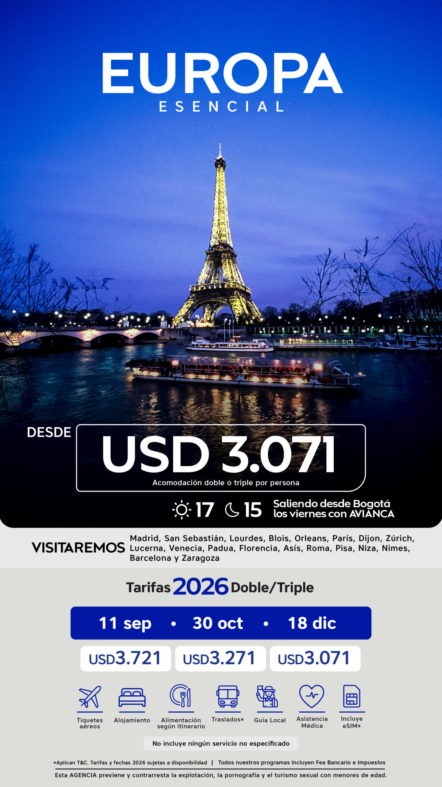 25 de septiembre al 11 de octubre de 2026 | USD 2.971 | USD 3.971 | USD 2.671 |