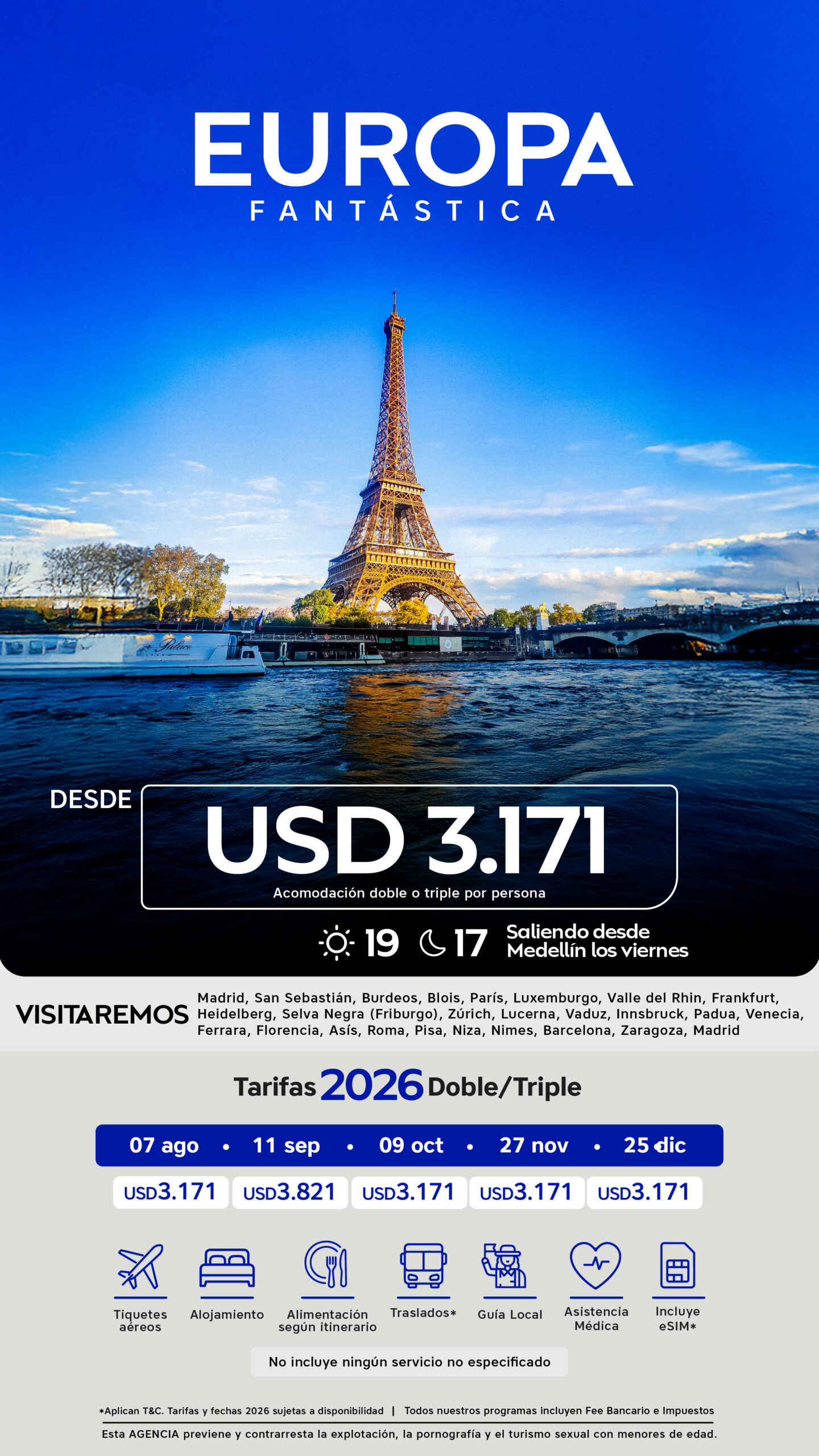 07 de agosto al 25 de agosto de 2026 | USD 3.171 | USD 4.271 | USD 2.771 |