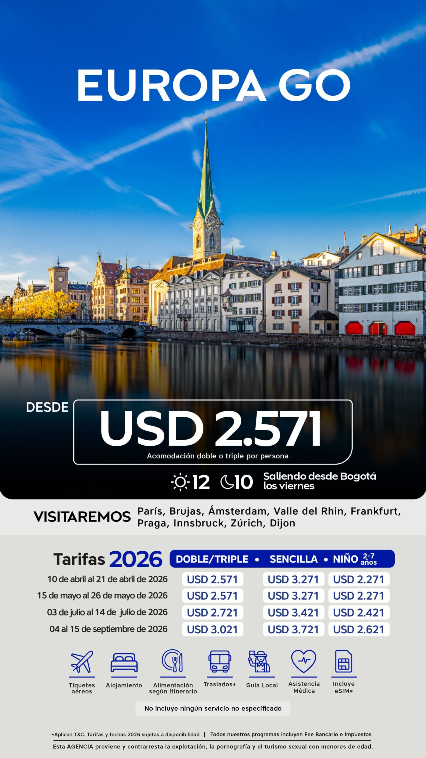 | FECHAS DE SALIDA | DOBLE / TRIPLE | SENCILLA | NIÑO (2-7 AÑOS) CON DOS ADULTOS |