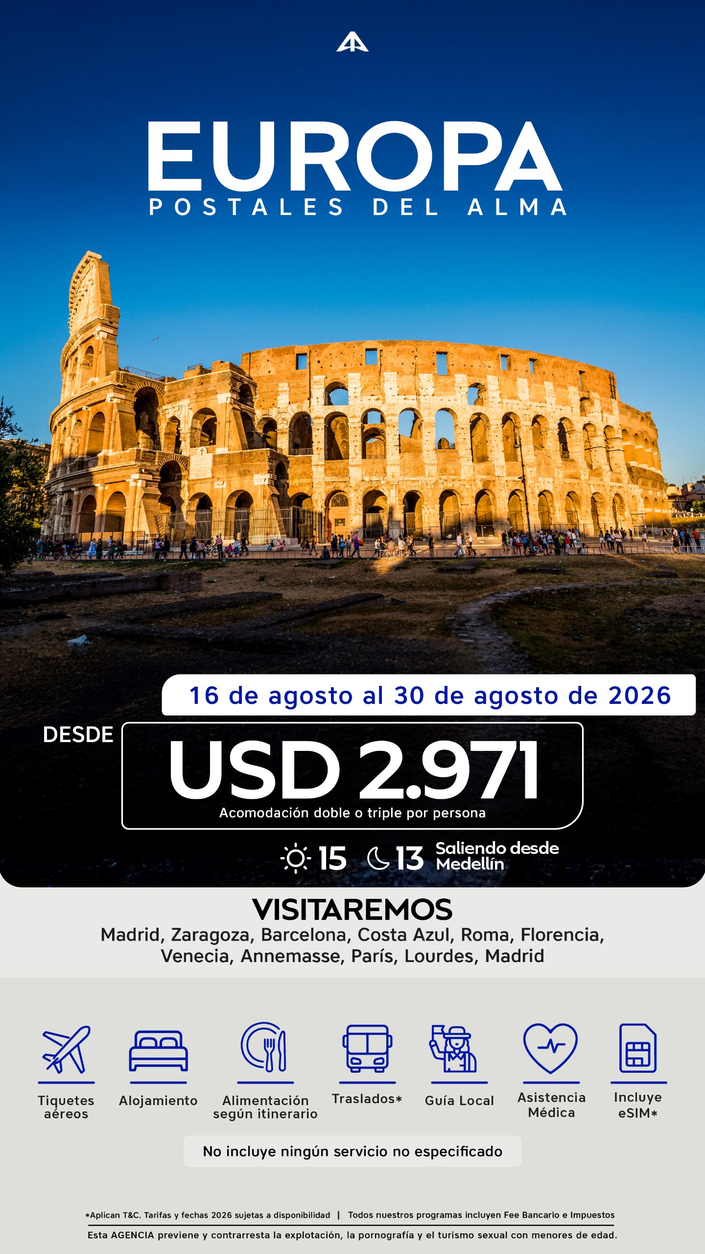 - Tiquetes aéreos con impuestos en la ruta Medellín – Madrid // Madrid – Medellín con Air Europa