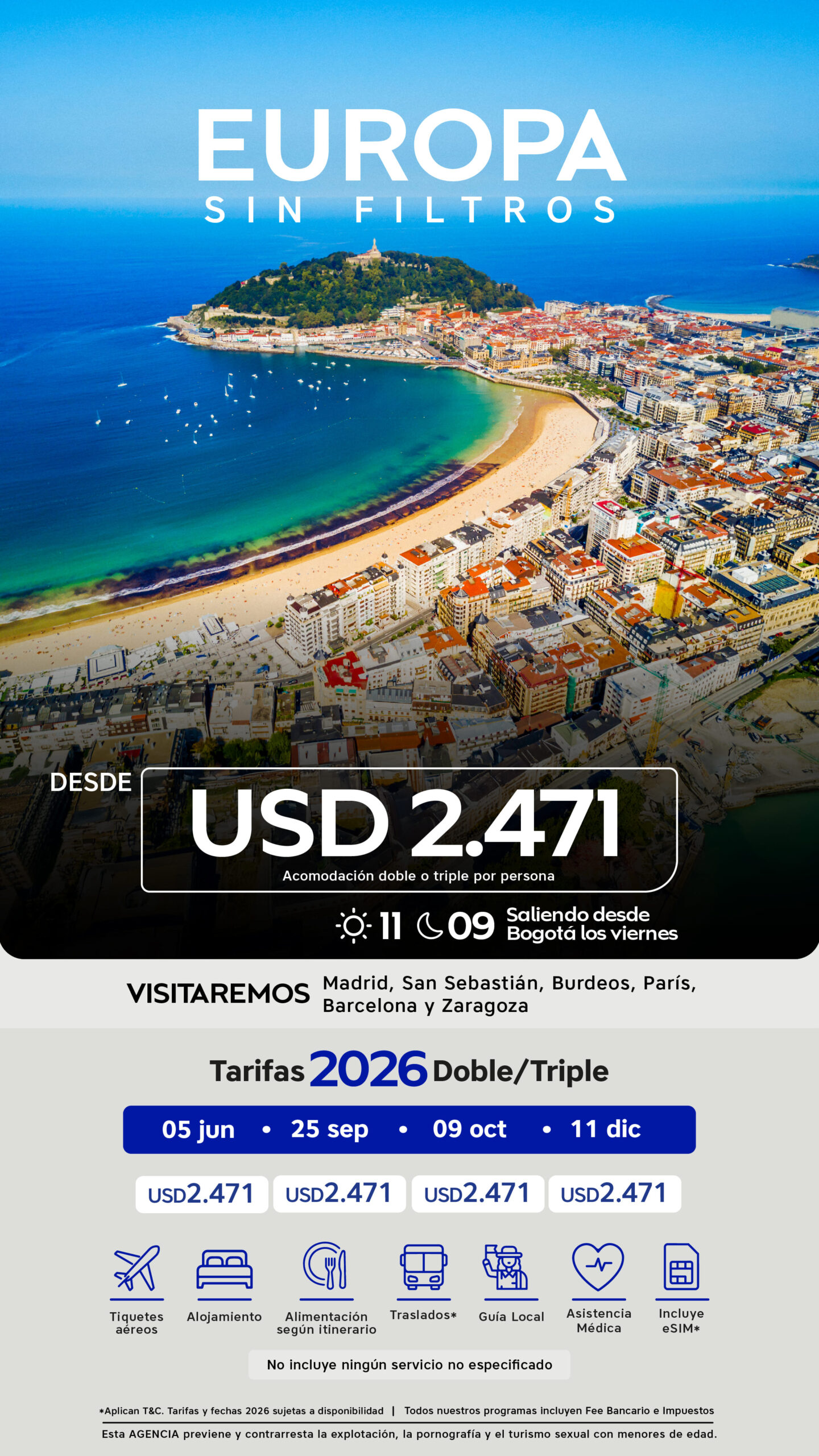 05 de junio al 15 de junio de 2026 25 de septiembre al 05 de octubre de 2026 09 de octubre al 19 de octubre de 2026 11 de diciembre al 21 de diciembre de 2026 | USD 2.471 | USD 3.071 | USD 2.171 |