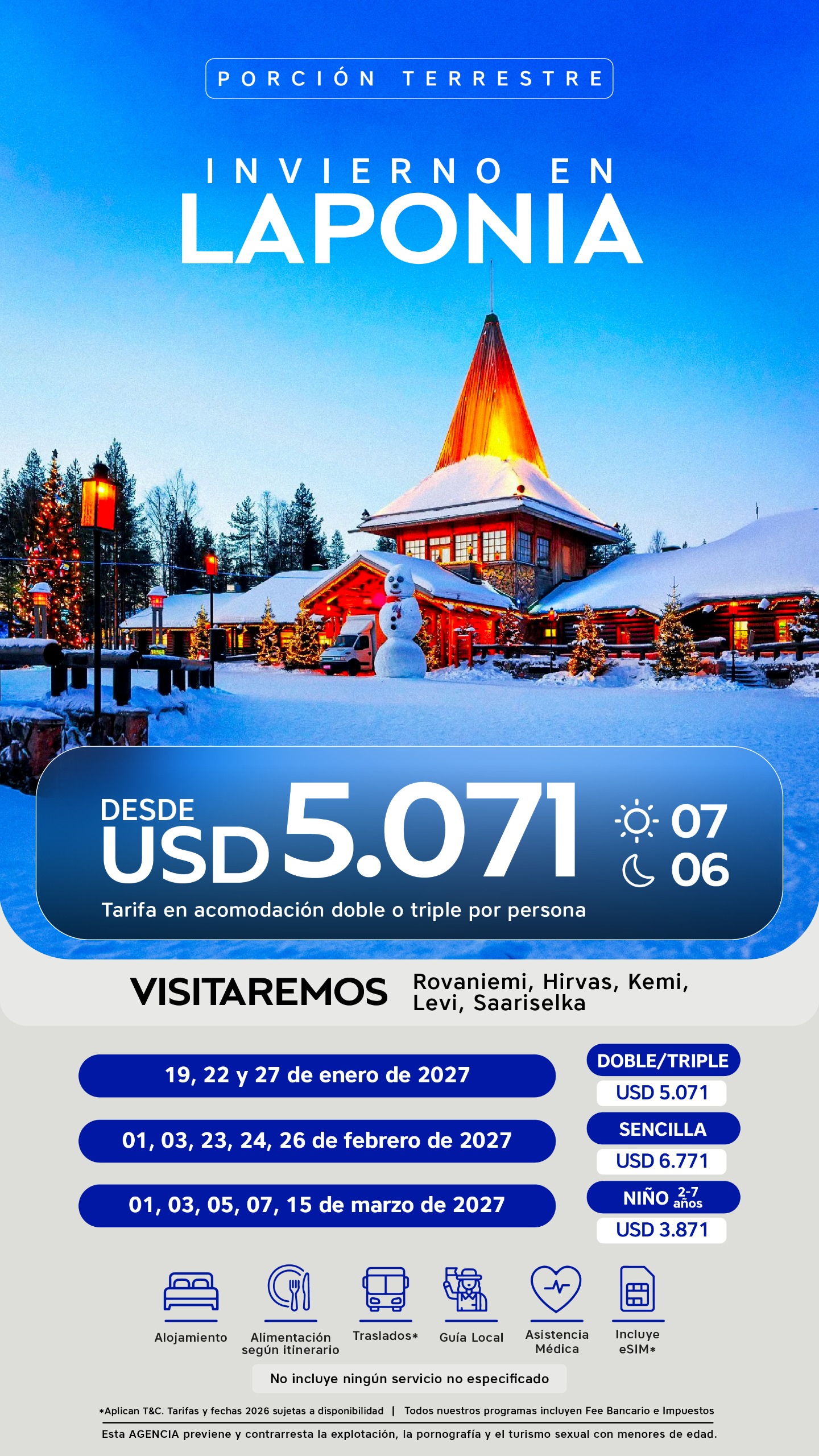 FECHA DE VIAJE | DOBLE/TRIPLE | SENCILLA | NIÑO HASTA LOS 10 AÑOS |