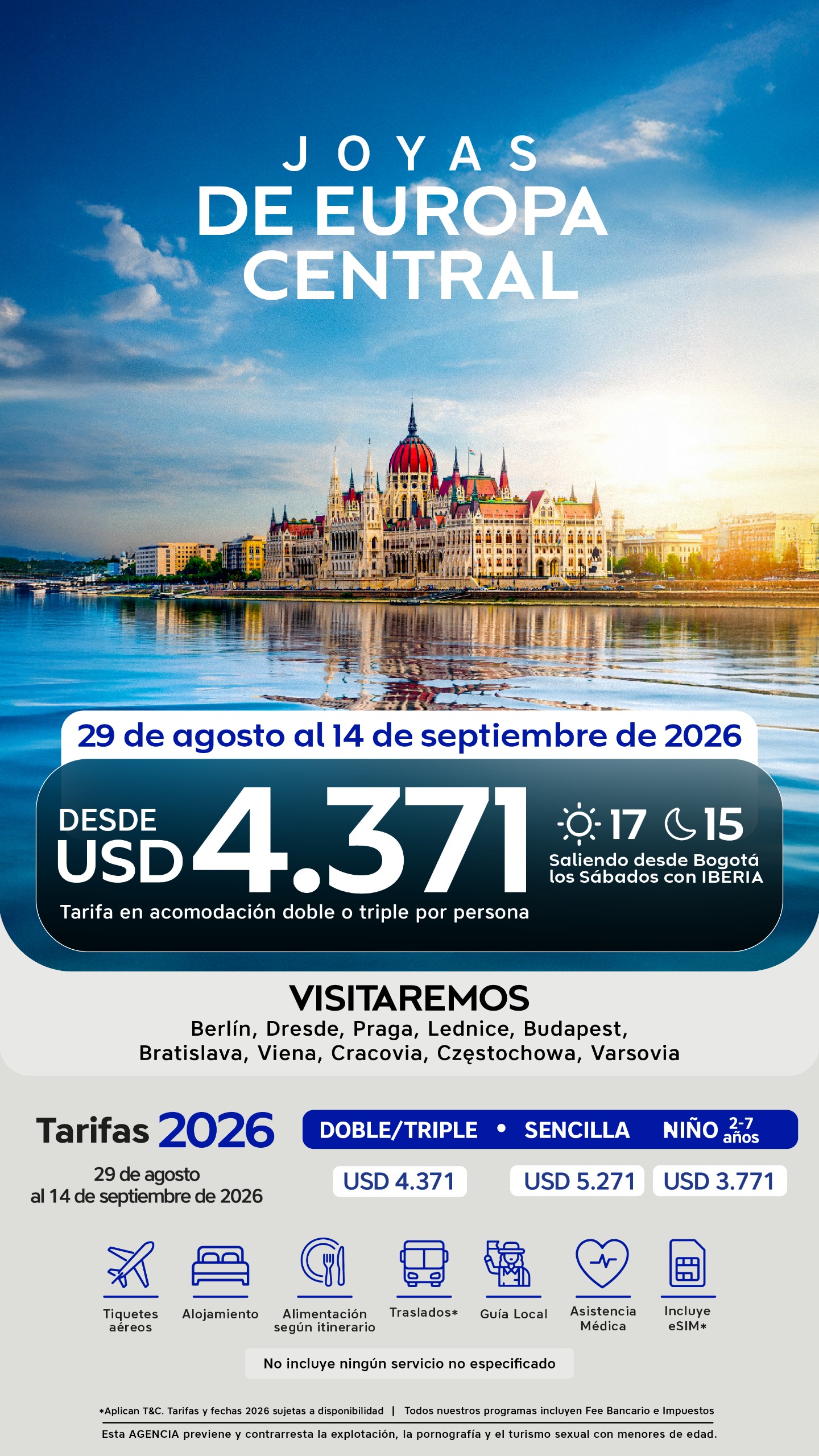 29 de agosto al 14 de septiembre de 2026 | USD 4.371 | USD 5.271 | USD 3.771 |