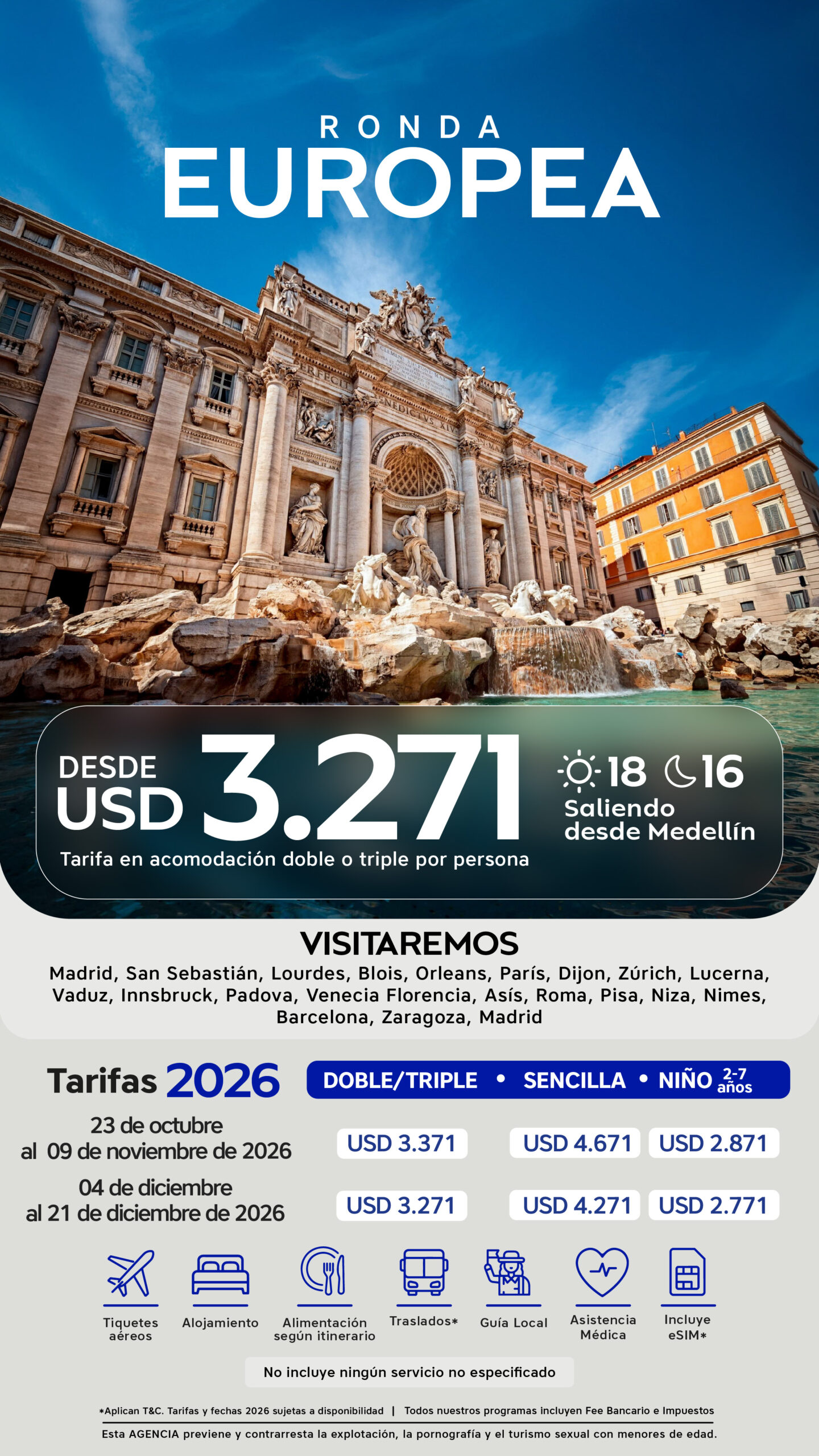 23 de octubre al 09 de noviembre de 2026 | USD 3.371 | USD 4.571 | USD 2.871 |