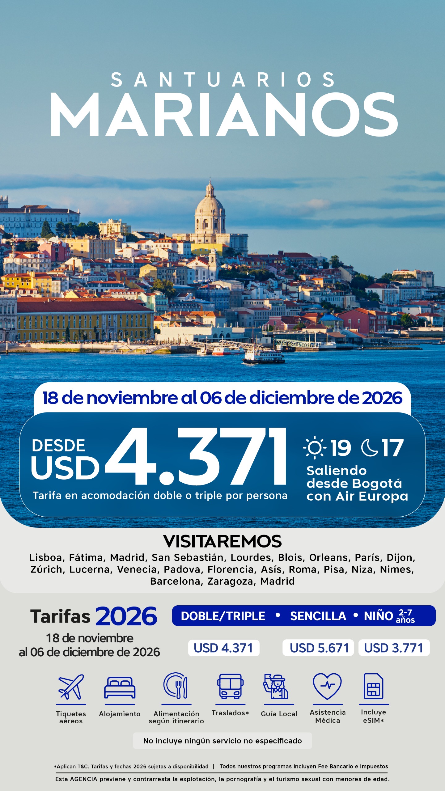 18 de noviembre al 06 de diciembre de 2026 | USD 4.371 | USD 5.671 | USD 3.771 |