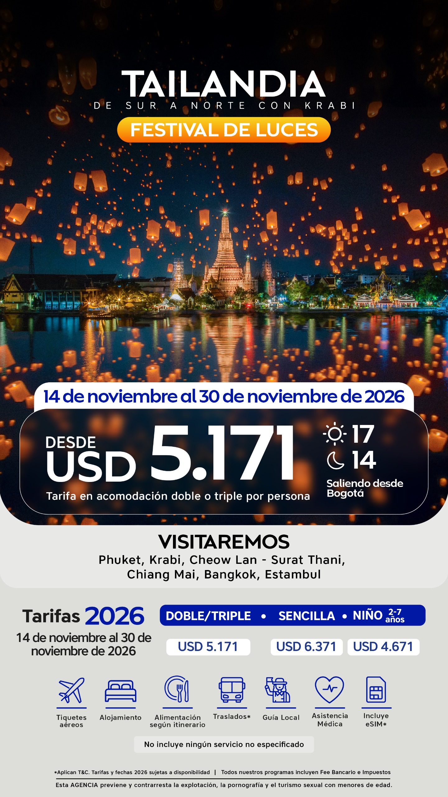 14 de noviembre al 30 de noviembre de 2026 | USD 5.171 | USD 6.371 | USD 4.671 |