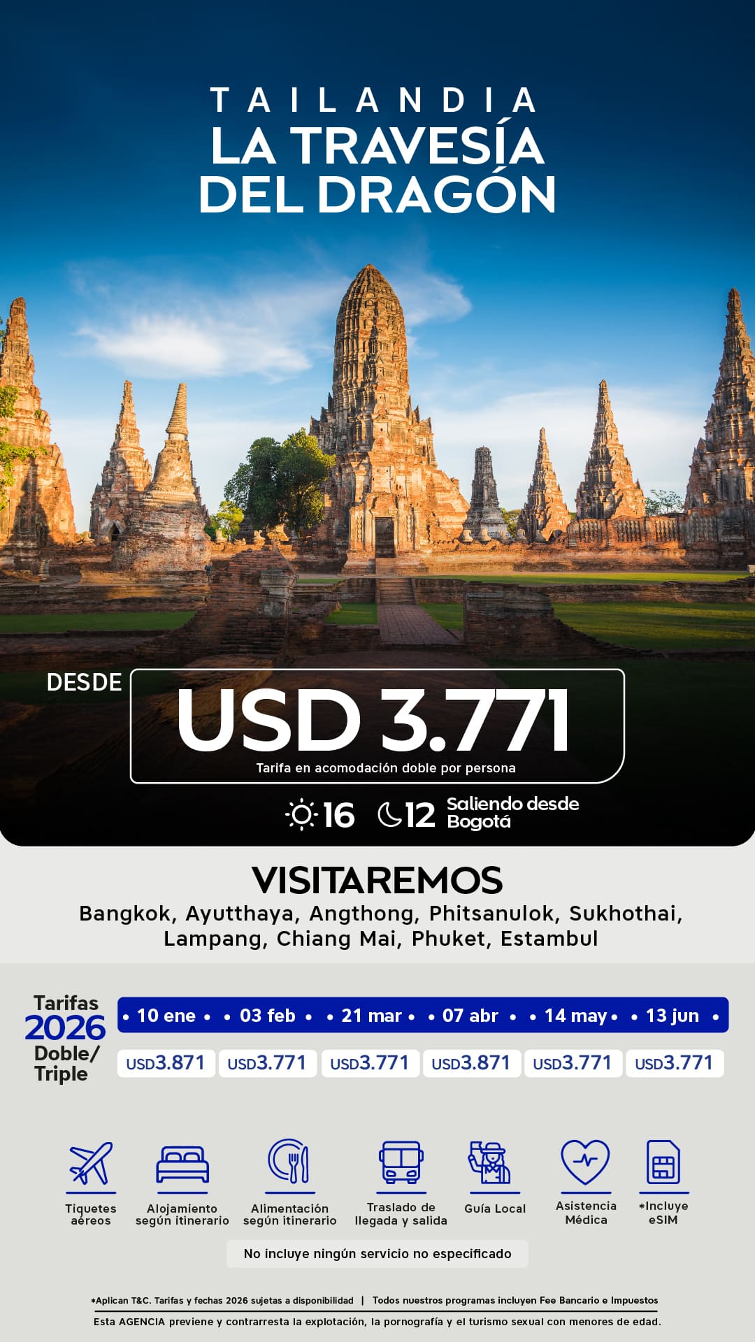- Acompañante de habla hispana durante todo el recorrido en Tailandia.