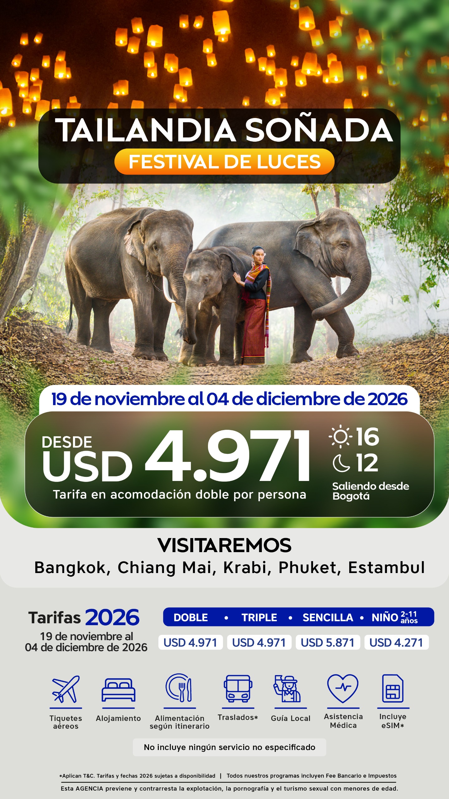 19 de noviembre al 04 de diciembre de 2026 | USD 4.971 | USD 4.871 | USD 5.871 | USD 4.271 |