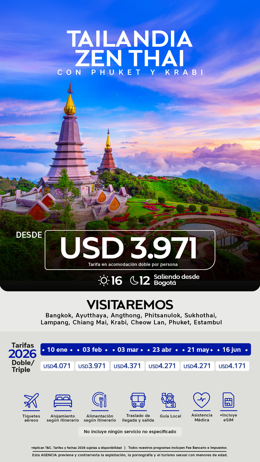 - Visa de Tailandia (en caso de requerirse según su nacionalidad) los colombianos no requieren visa.