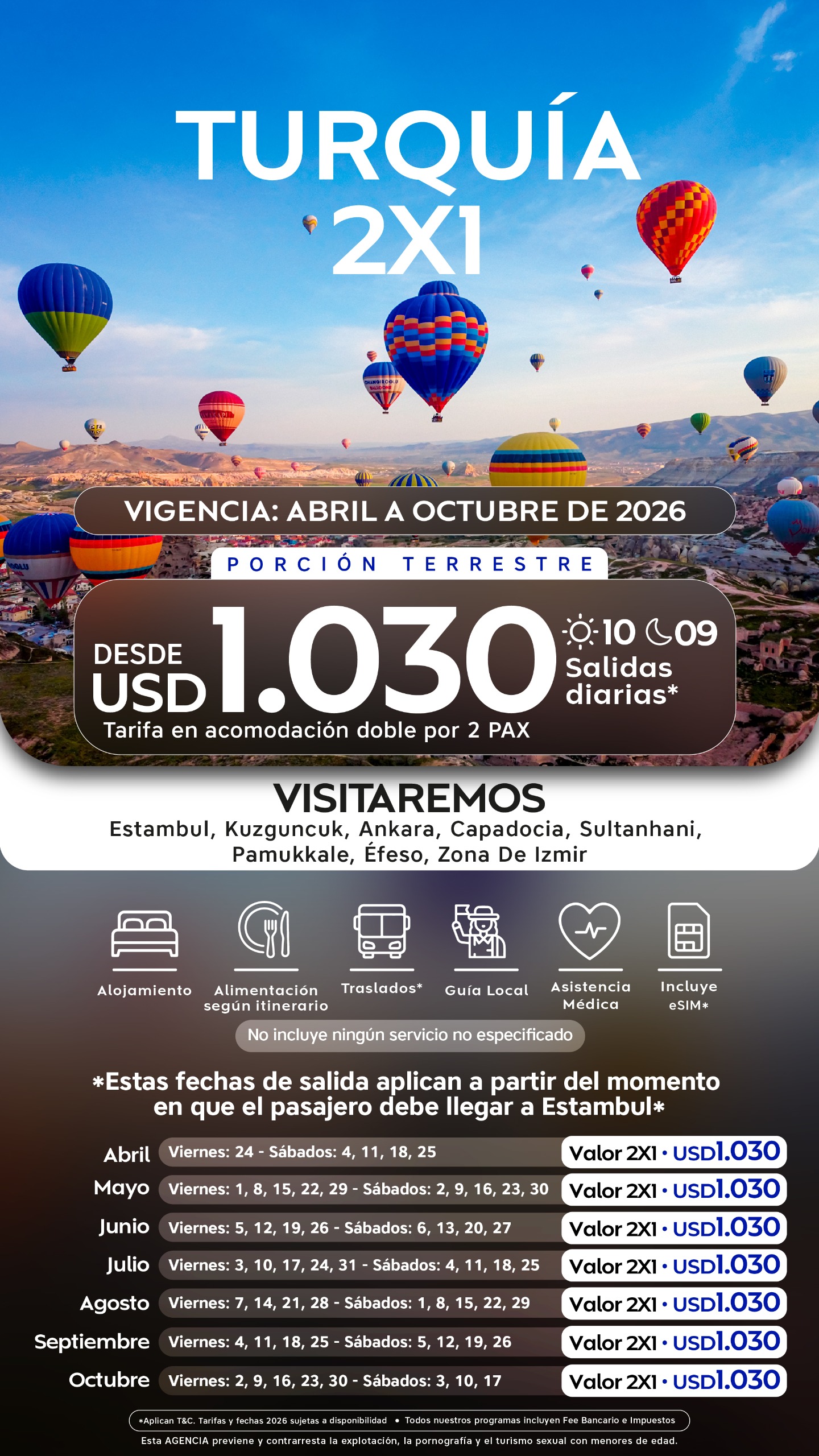 - Tarifas aéreas sujetas a cambios por incremento de impuestos del tiquete por las aerolíneas.
