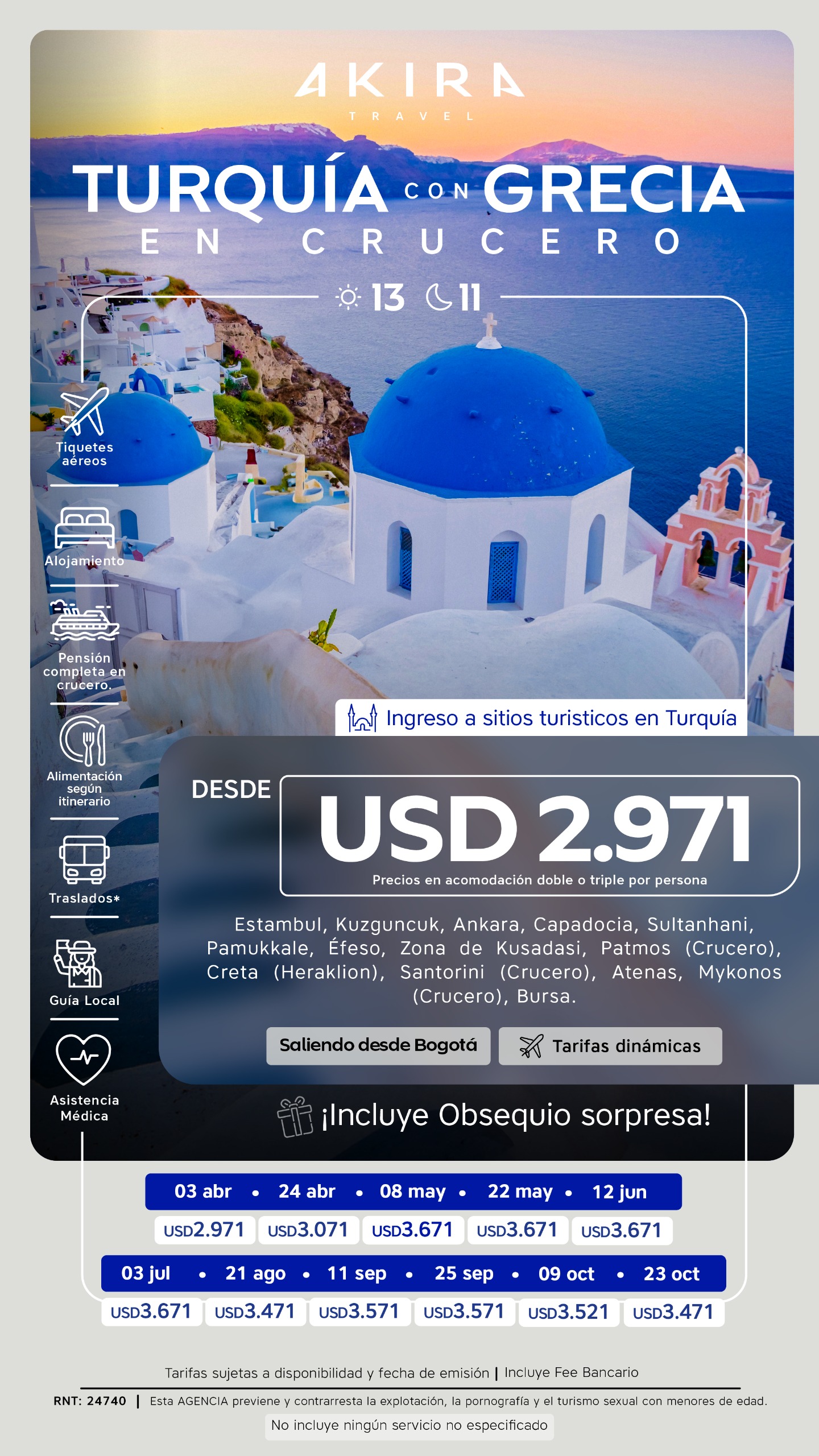 • Tiquete aéreo con impuestos Bogotá – Estambul // Estambul – Bogotá.